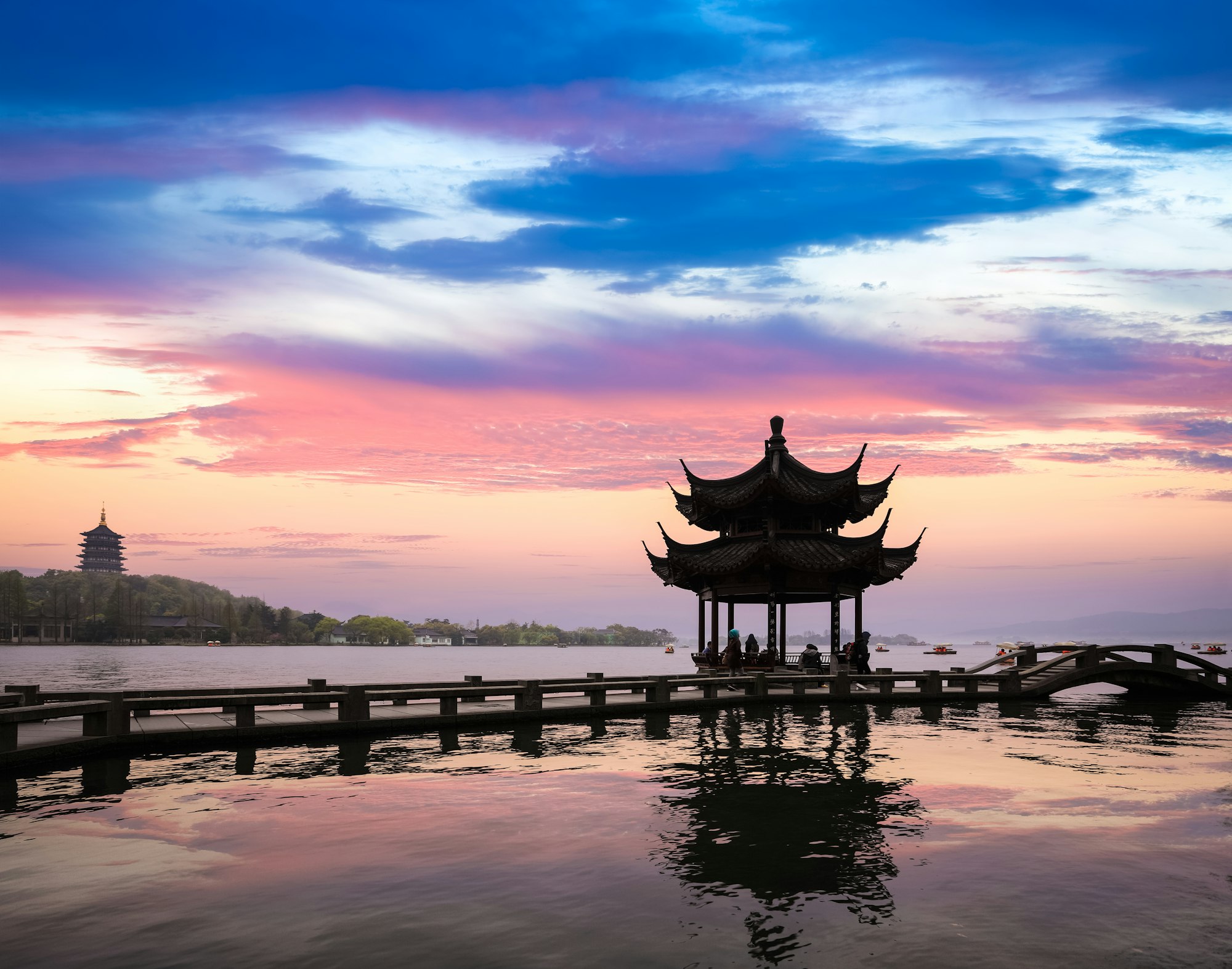 Tu ruta continúa hacia Hangzhou, conocida por el Lago del Oeste, un lugar de belleza serena que ha inspirado a poetas y artistas durante siglos. Pasea por sus jardines y templos, y disfruta de la gastronomía local basada en productos frescos y delicias como el té Longjing.
